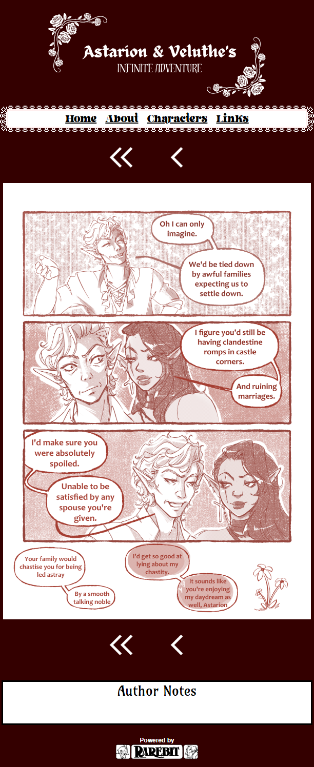 It's also a practice that encourages small changes, change a line here and there, add a page, experiment, ect. I also find that going through the small web is just generally a better experience for me than social media. Unfortunately not everyone has a website though, so I'd lose track of artists I like. This gallery for example, was made a couple weeks after I got the website up - and the comic subsite was made a little bit after.