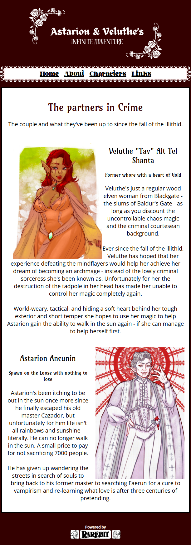 The next day, I received an email letting me know that I had gotten an interview to do professional development with a prestigious organization and one of my dream companies. I had applied as a sort of experiment, a shot in the dark. It was a weird opportunity but I felt compelled to try. I didn't even know what I wanted. They asked for multiple samples of creative work, but said it could be anything, literally anything. So I submitted my most popular piece of art, a scantly clad Vampirella, and my most popular writing - the DA essay. I had used my skills in UX to polish up an interactive desktop and website prototype in Figma, and chose to omit my website. But I left enough of myself that I wasn't hiding anything much, yeah I put Astarion in there, I let parts of it look like GeoCities page in an ironic nod to my seeding on the internet.