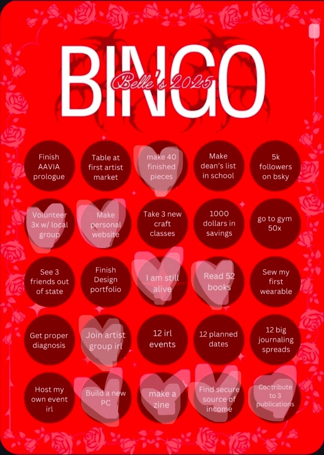 And so I kind of was like.... what if I didn't try, I just did what I wanted, and did whatever dayjob for money, I'll have some stuff I'd like to do but I won't hard press myself. So I heard the idea of making a bingo card instead of a hard goals plan and did that. Nevermind this one is deepfried from constant copypasting lol
