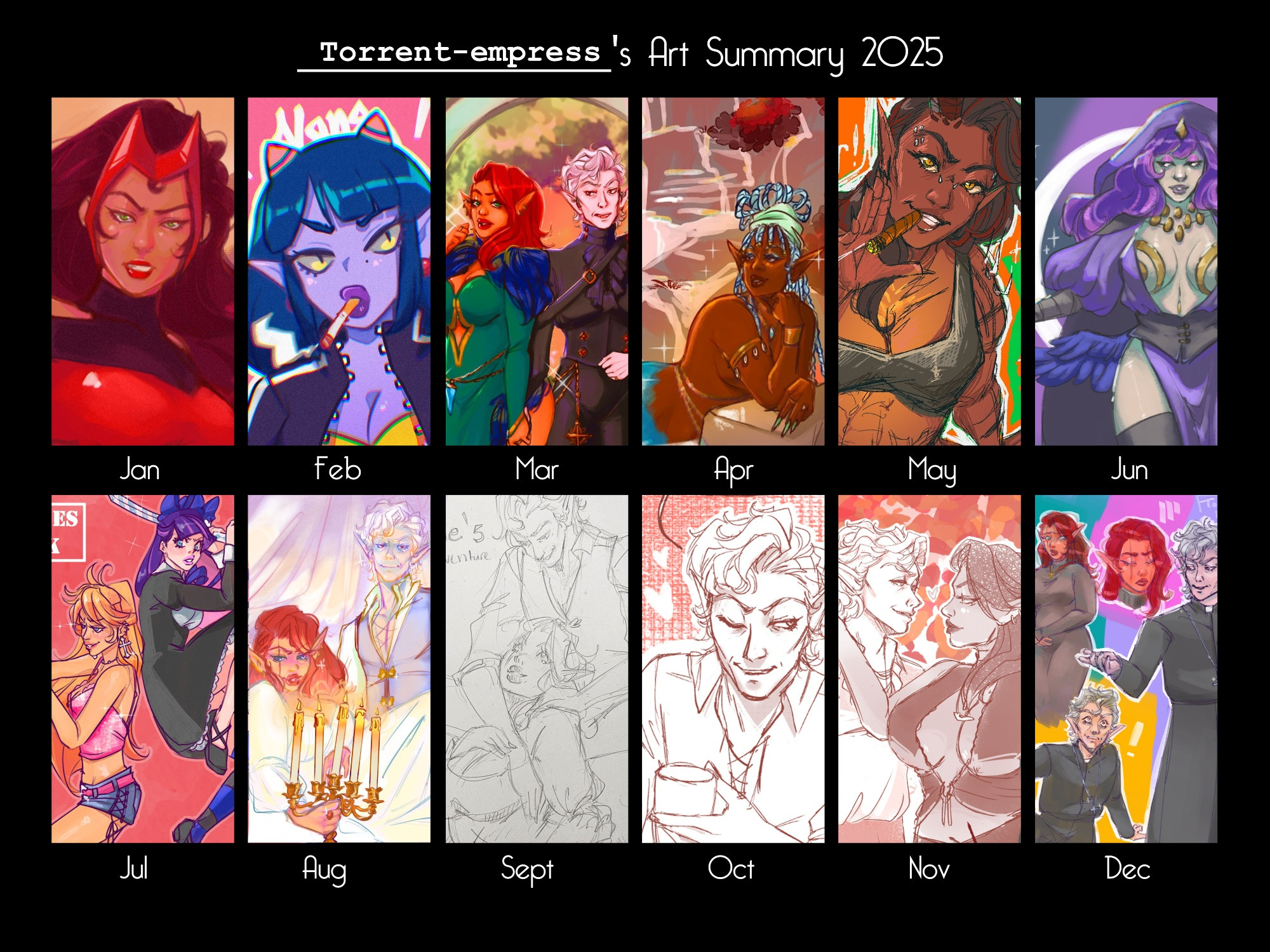 Some things I tried to focus on this year were: Color theory & composition (I think I improved a lot with color, but composition I'm still working on.)
